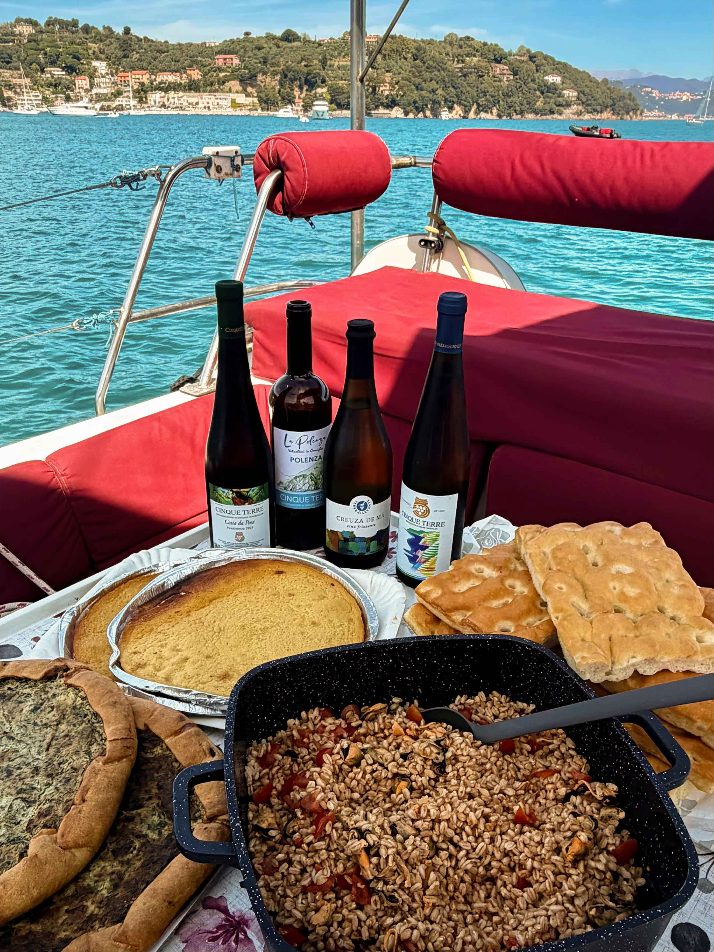A route planned at sea together with you: Cinque Terre, Portofino, Camogli, Genoa, and even the Tuscan coast as far as Elba Island.